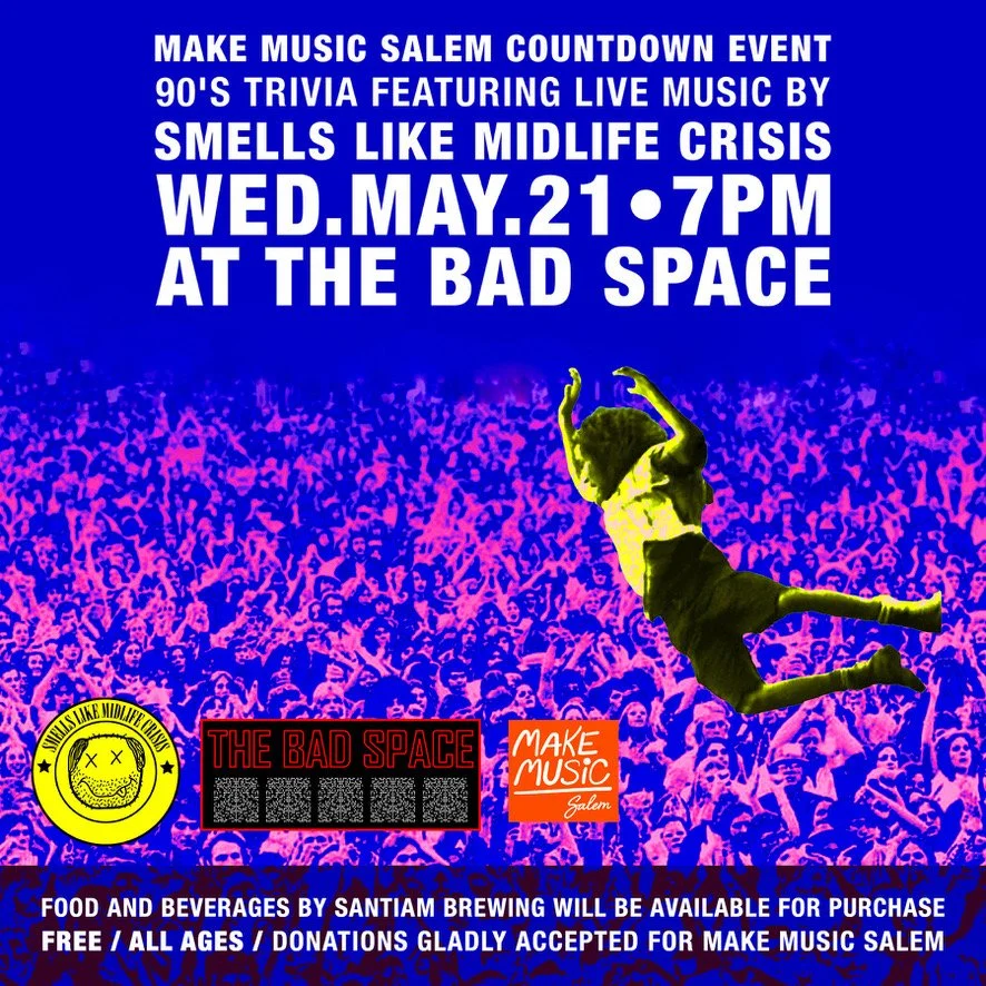 Our next Make Music Salem Countdown Event is a good one! Test your knowledge at the Back to the 90’s Trivia Night and Live Music at The BAD Space on Wednesday, May 21st!