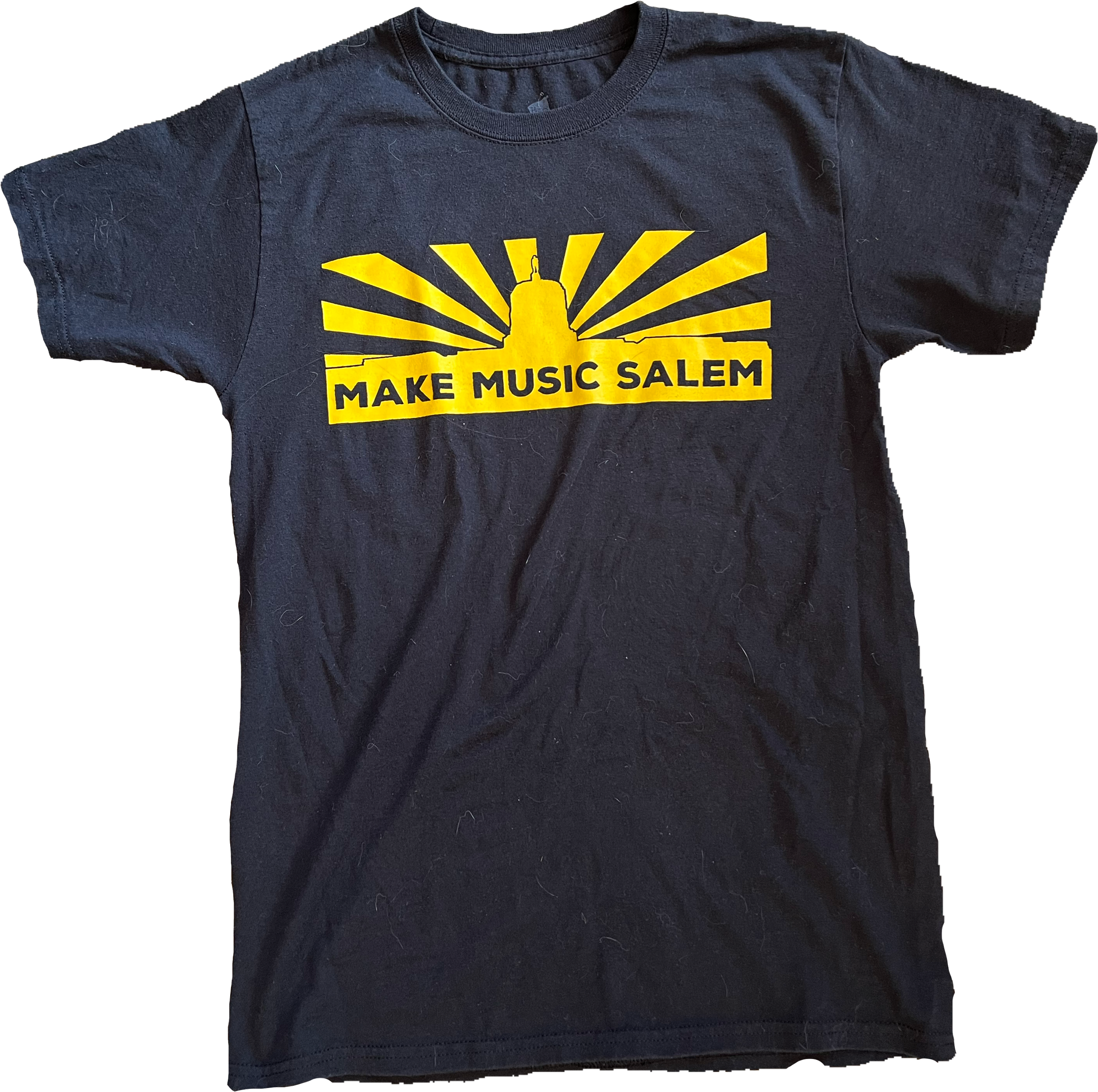 Do you love participating in Make Music Salem? Now you can show your support and spread the word about this amazing event with Make Music Salem T-Shirts! These stylish, originally designed T-shirts have been made exclusively for Make Music Salem, a fiscally sponsored non-profit organization in cooperation with the Salem Foundation, so when you purchase them, all proceeds go to supporting this incredible community wide event.